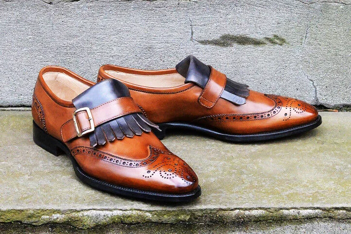 Classy Men two tone Dress Shoes, Men wingtips brogue fringe shoes