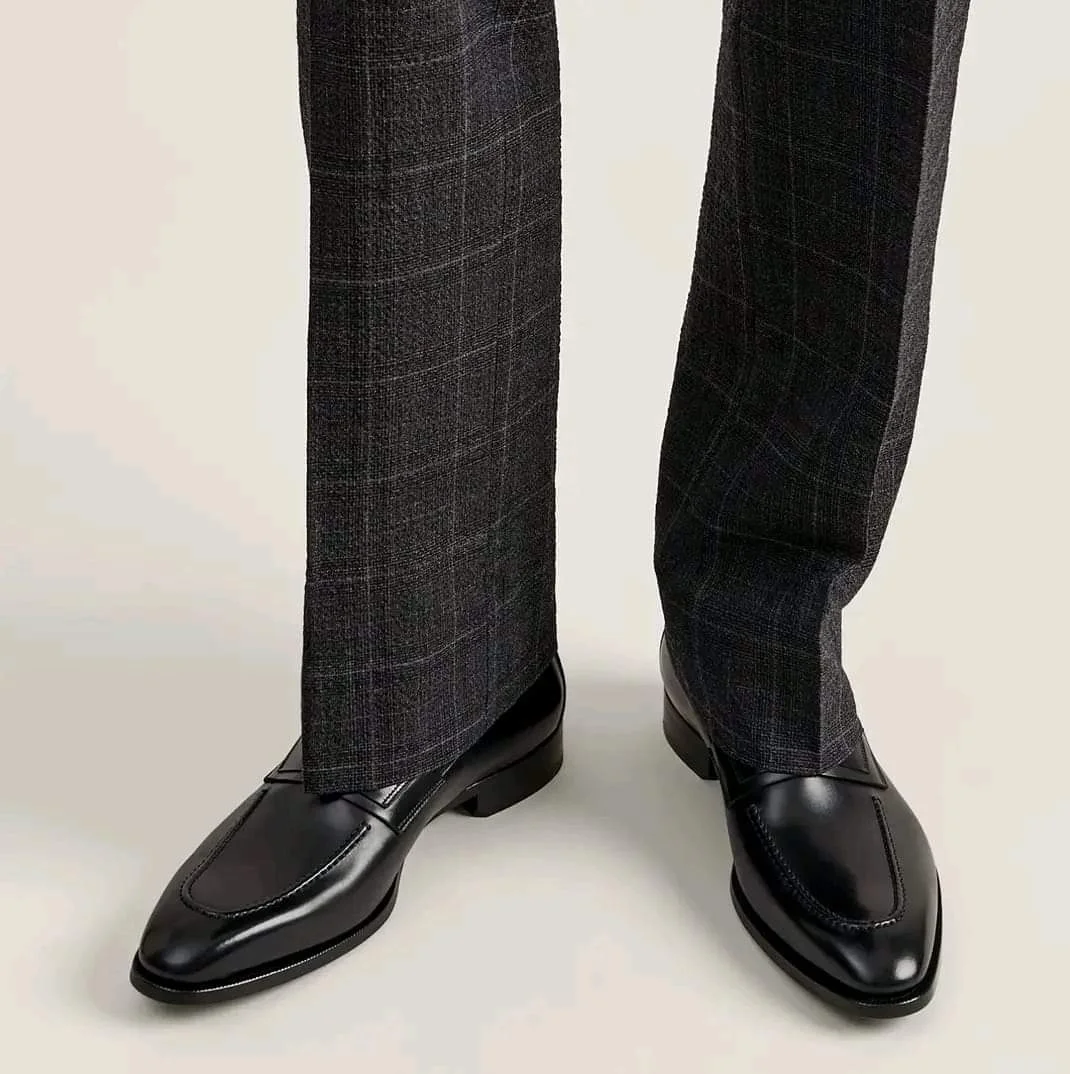 Handmade Men black leather tuxedo shoes, Men black leather moccasins