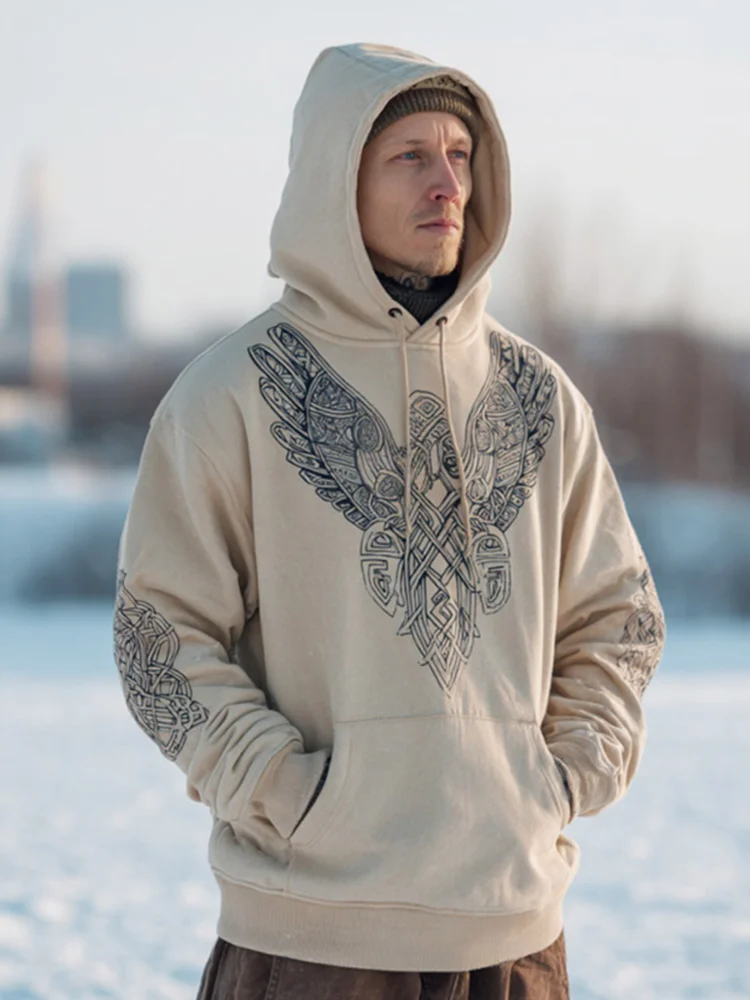 Men's Retro Celtic Raven Hooded Sweatshirt