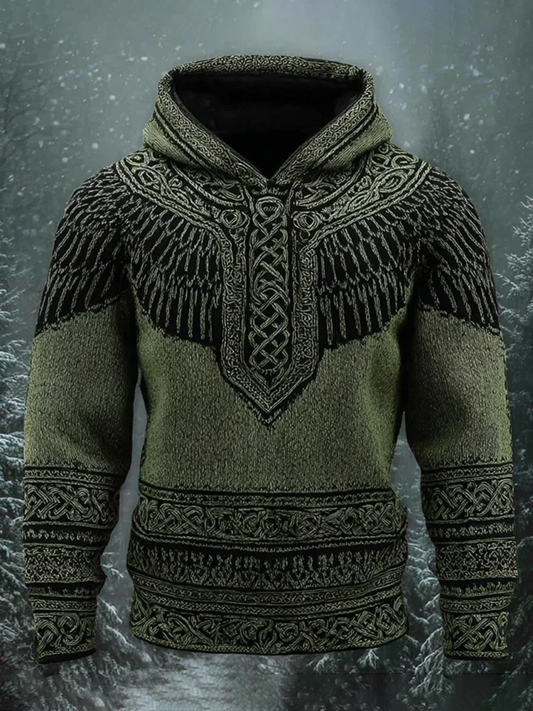 Men's Viking Celtic With Wings Art Cozy Knit Hooded Sweater