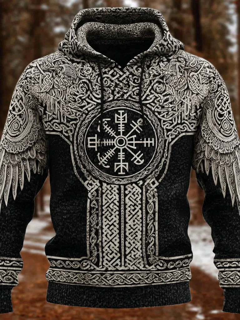 Men's Viking Rune And Wings Knit Hooded Sweater