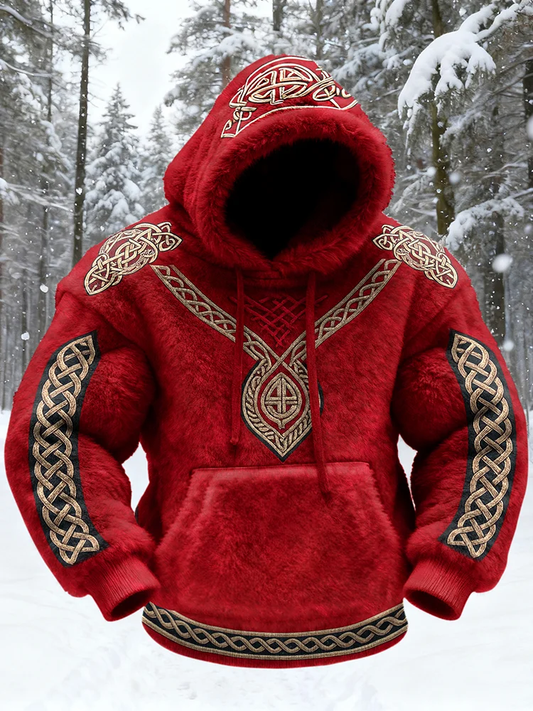 Men's Viking Tribal Jacquard Celtic Knot Inspired Art Plush Warm Hoodie