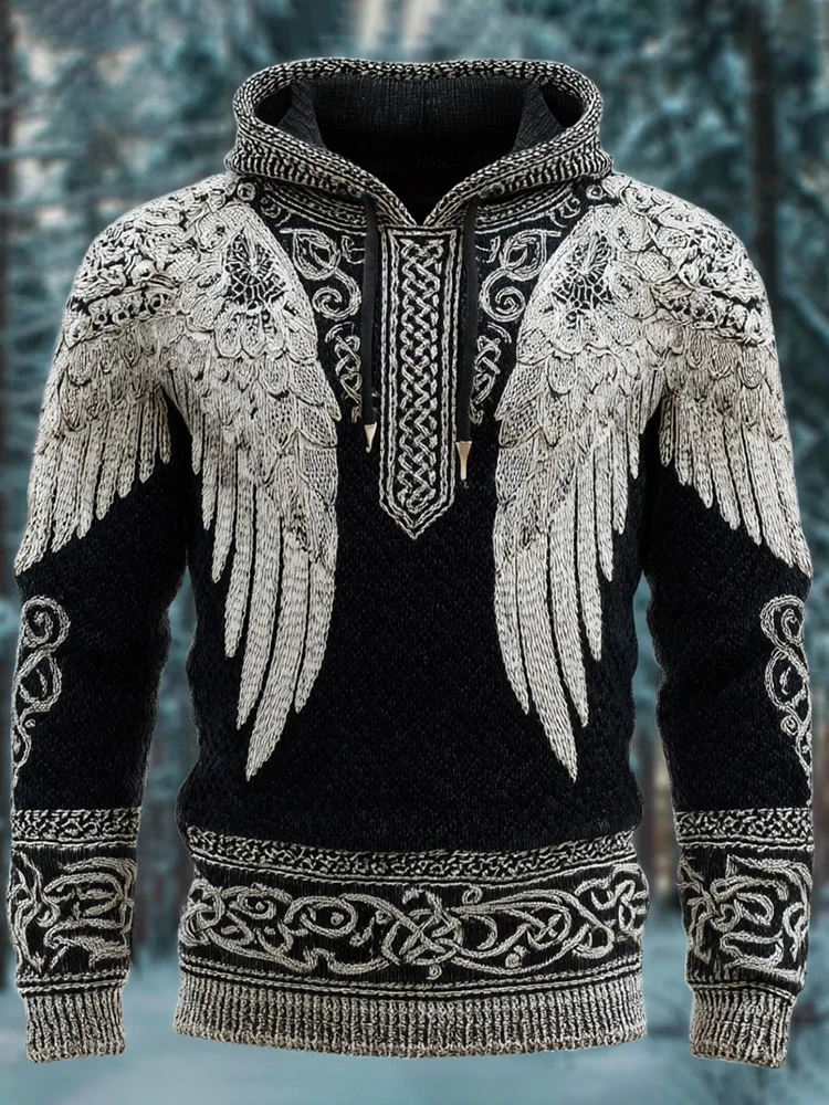Men's Viking Wings Art Print Casual Knit Hooded Sweater