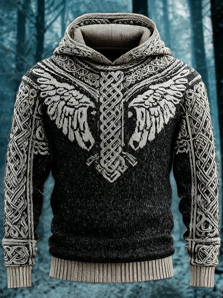 Men's Viking Wings Art Print Knit Hooded Sweater